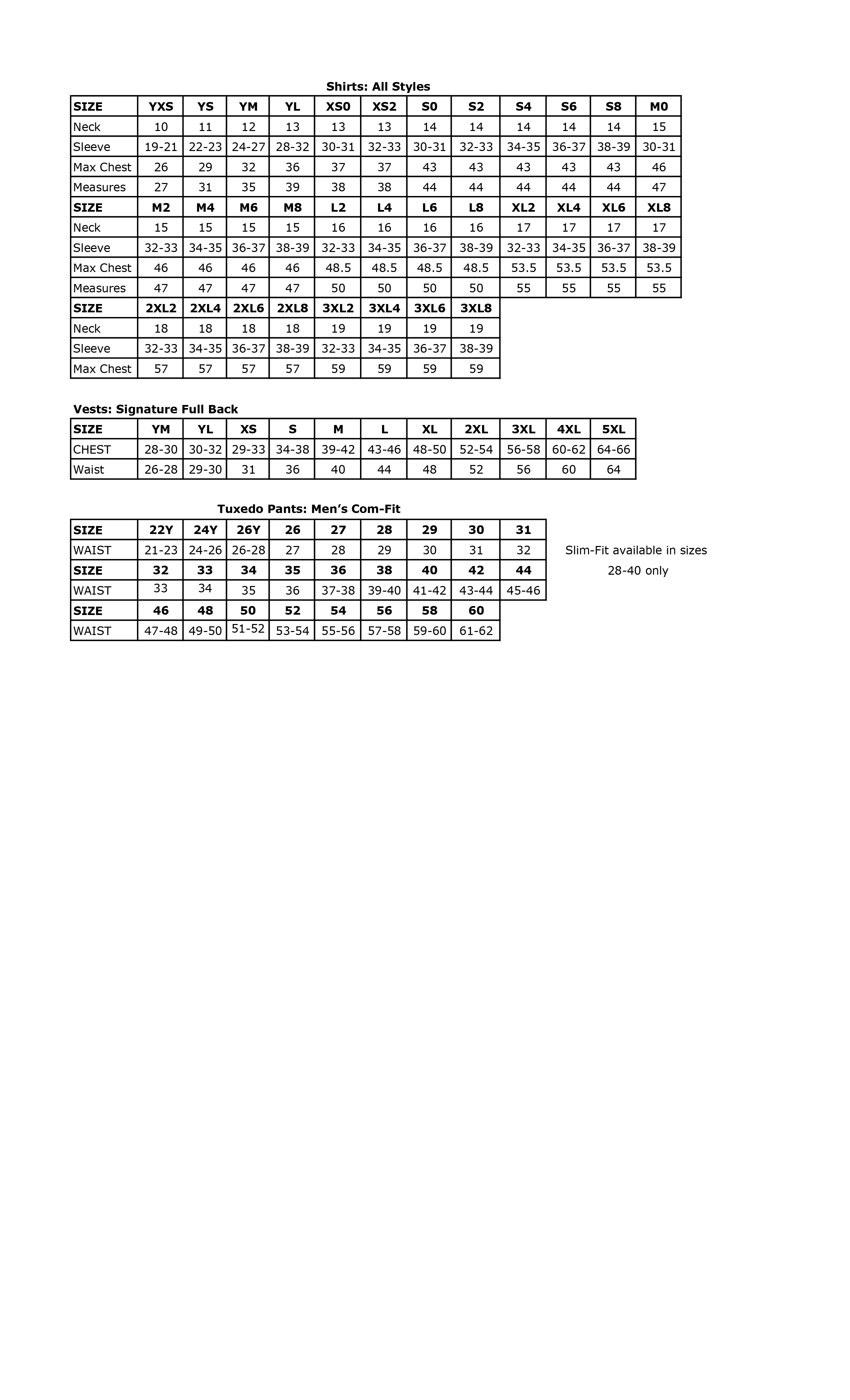 Please see our Fitting/Measurement video if you need measuring assistance. If you are not sure of the correct size, please leave your measurements in the boxes provided below, and we will re-size your items for you. Pants are delivered un-hemmed.